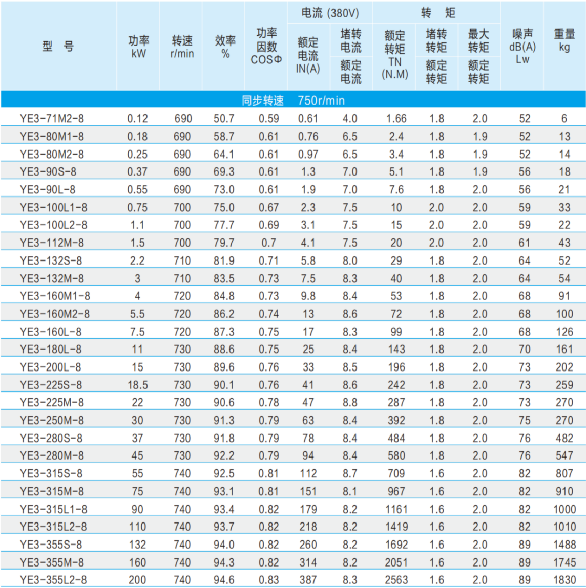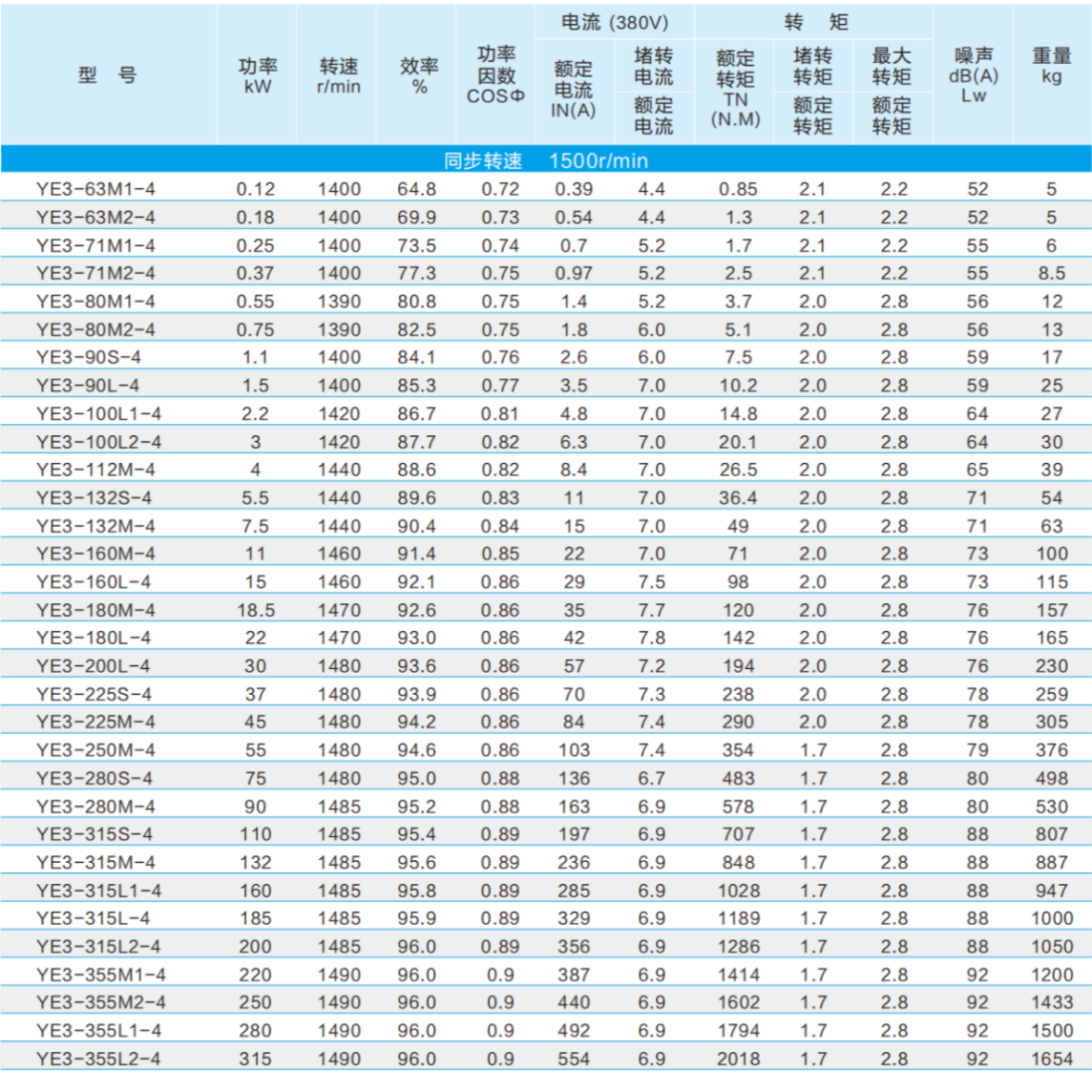 YEXA系列三相異步電動(dòng)機(jī)電機(jī)效率符合GB18613-2020標(biāo)準(zhǔn)中3級(jí)能效要求,且能滿 足IEC60034-30標(biāo)準(zhǔn)中的IE3效率等級(jí)。